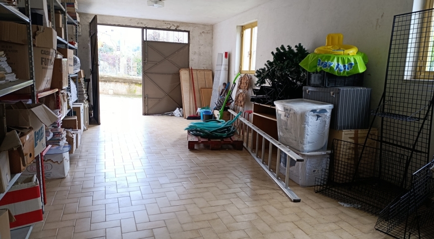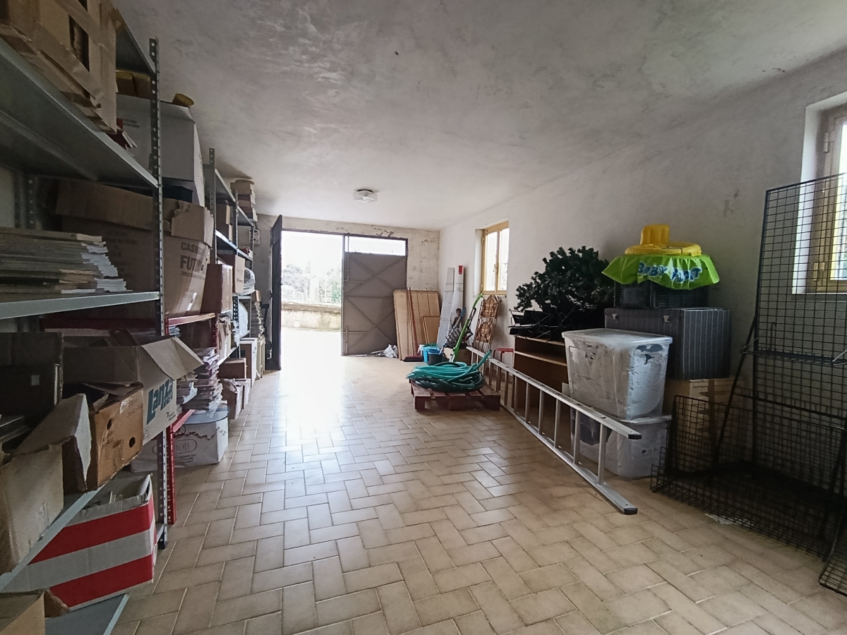 In piano centro abitato, a meno di 100mt dalla Piazza, vendesi locale di deposito a cui è aggraffata una corte di terreno per circa 380mq pianeggianti e recintati per intero. Il deposito apre direttamente sulla strada carrabile ed ha una metratura interna di circa 35mq e dispone di un bagno finestrato ealtre due finestre che aprono sul terreno pertinenziale. Trattasi di un corpo a sè stante staccato dal fabbricato adiacente e risulta molto comodo per l'accesso con qualsiasi mezzo. Zona abitata ma con verde circostante.